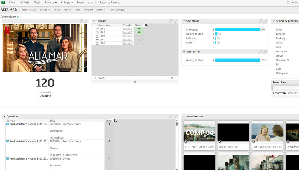 Permite a estudios y equipos multidisciplinares asignar tareas, hacer seguimiento del progreso, revisar versiones, compartir feedback y centralizar la información del proyecto en tiempo real, desde cualquier ubicación. Su interfaz flexible se adapta a los distintos roles dentro del pipeline, facilitando la colaboración entre departamentos y la toma de decisiones basada en datos.