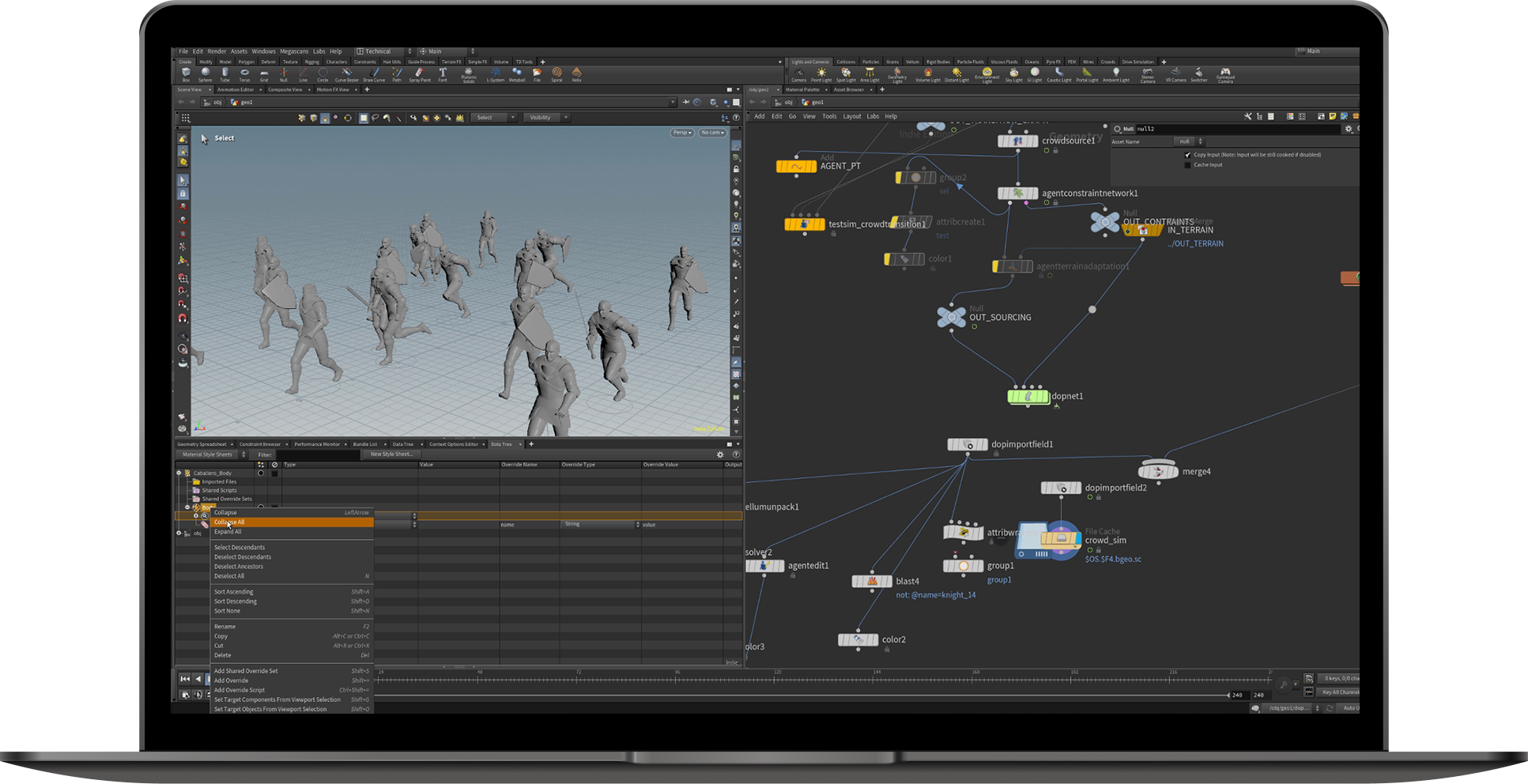 Dominarás las herramientas de simulación de multitudes en Houdini y serás capaz de crear y controlar sistemas de agentes complejos, aplicando conocimientos avanzados de animación procedural y dinámicas. Además, adquirirás las habilidades necesarias para integrar multitudes en pipelines de producción de VFX, aportando soluciones profesionales a proyectos de cine, televisión o videojuegos.