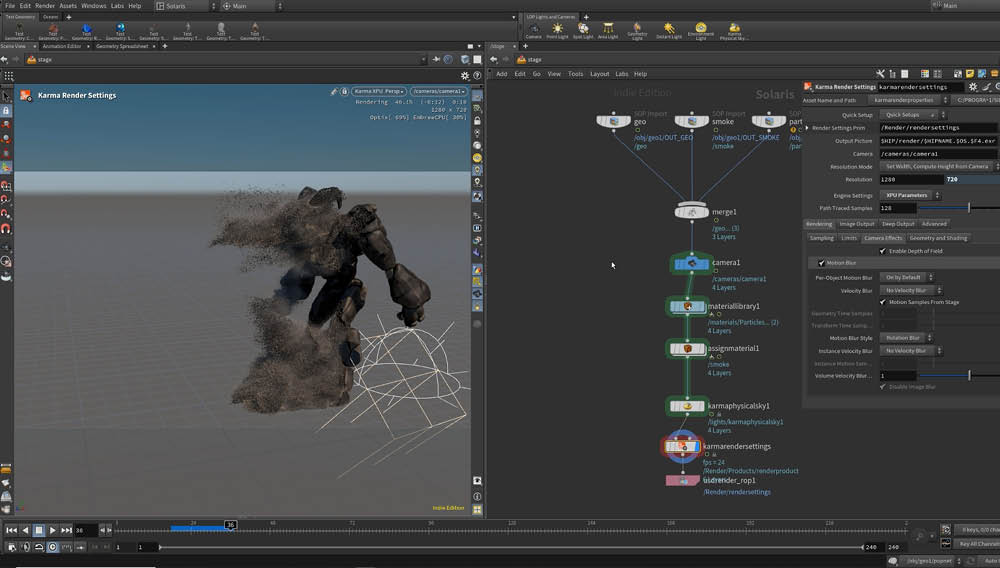 Destaca por su enfoque en la generación de gráficos procedurales, permitiendo la elaboración de grandes escenarios, efectos de partículas, fluidos y otros elementos que requieren simulación compleja.