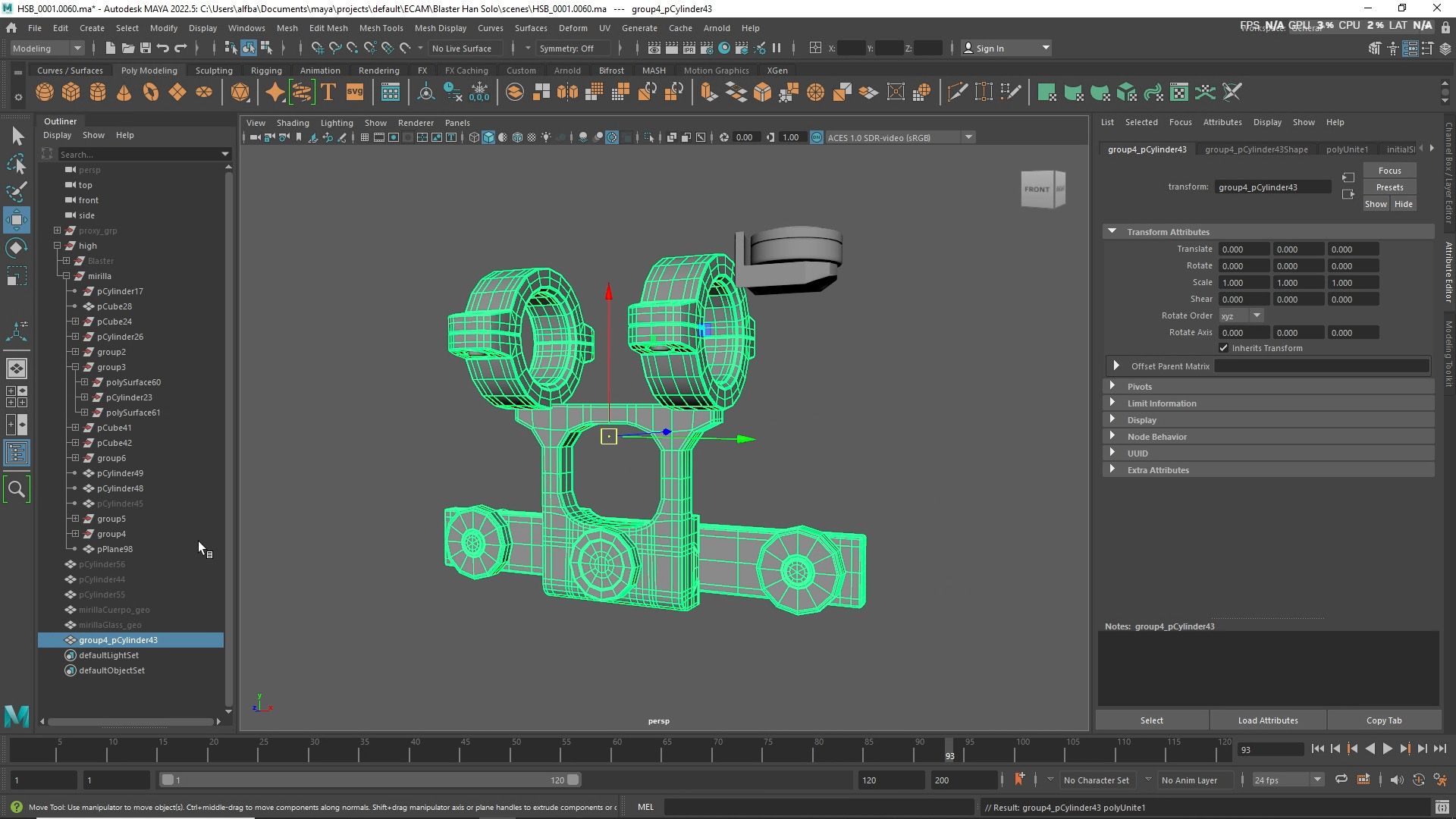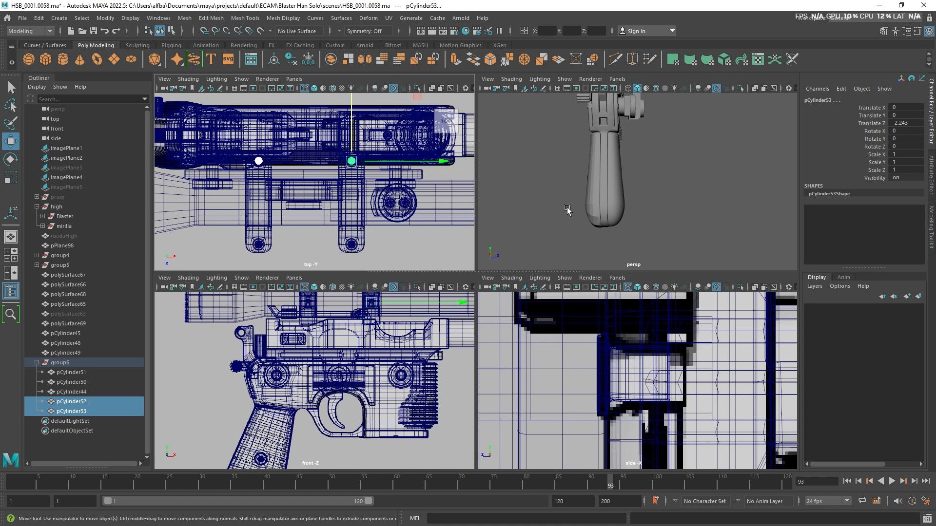En el tercer supuesto (prop complejo), desde el inicio comenzaremos modelando las diferentes partes del modelo en bajo poligonaje (un punto intermedio entre el blocking y el modelo de alta). Una vez tengamos el modelo terminado en bajo poligonaje, comenzaremos a cortar, extruir y biselar las diferentes partes para conseguir el modelo en alta. También añadiremos los diferentes detalles.